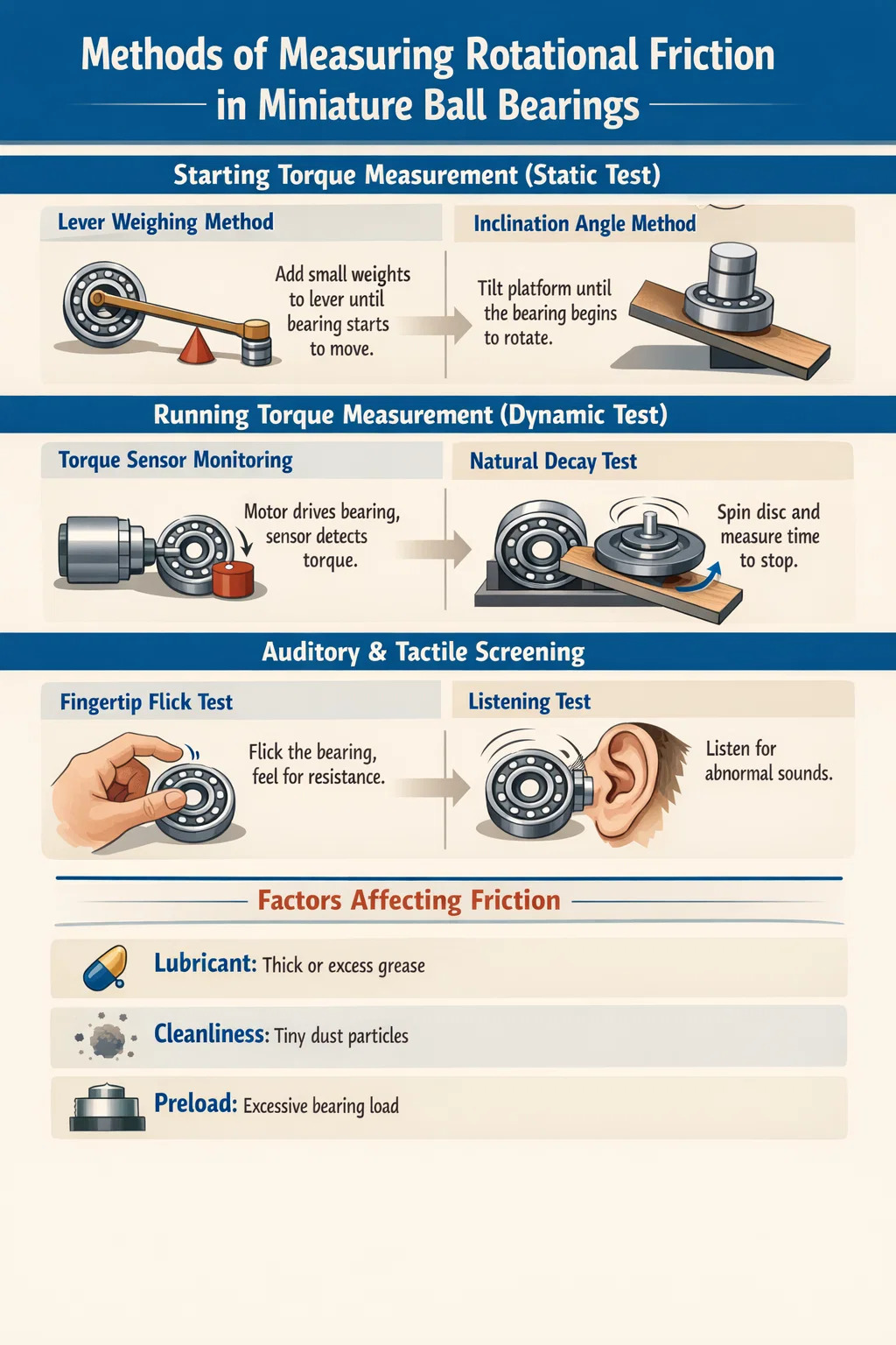 Messung der Rotationsreibung von Miniaturkugellager Dabei geht es im Wesentlichen um die Messung des Widerstandsdrehmoments, das sie während der Rotation erzeugen. Aufgrund der geringen Größe und extrem geringen Reibung dieser Lager sind herkömmliche Messmethoden oft nicht empfindlich genug.